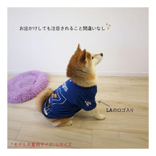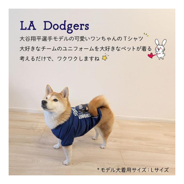 ロサンゼルス ドジャース 、大谷翔平選手モデルの可愛いワンちゃんのTシャツ。
