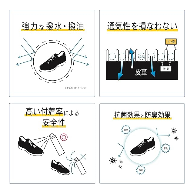 ●防水・撥油・防汚の効果を与え、靴を保護します。