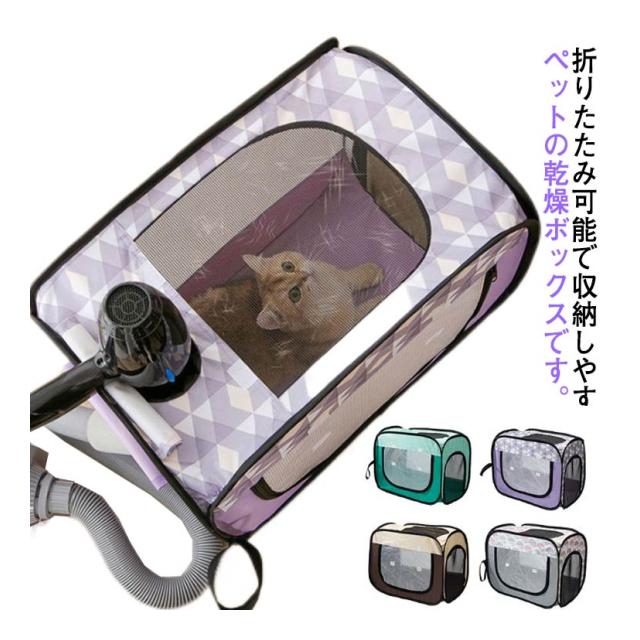 折りたたみ可能で収納しやすいペットの乾燥ボックスです。