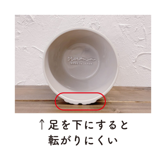 Point1:犬が食べやすい!「高さ」を設けたデザイン フードボウルに設けられた約7cmの高台。この高さが犬の食事の負担を減らし、「吐き戻し」を防止してくれます。 高台が設けられていない低い食器でごはんを与え続けると、食道が胃より下がってしまい、ごはんが逆流しやすく、食後の吐き戻しにつながります。 頭を下げることなく食べることができるため、シニアや関節炎など病気を患ったイヌの負担軽減にもつながります。 高台は末広がりで安定した設計のため、転倒の恐れもありません。