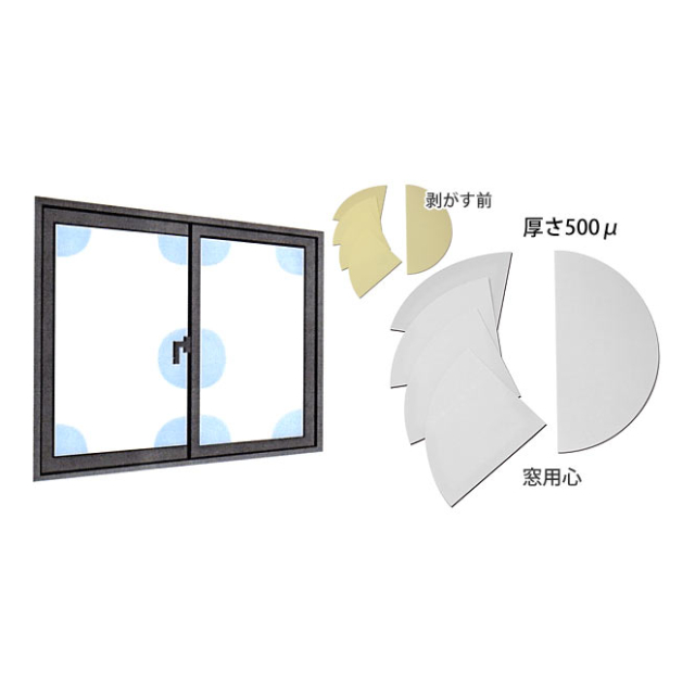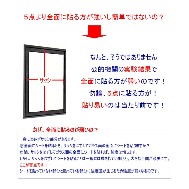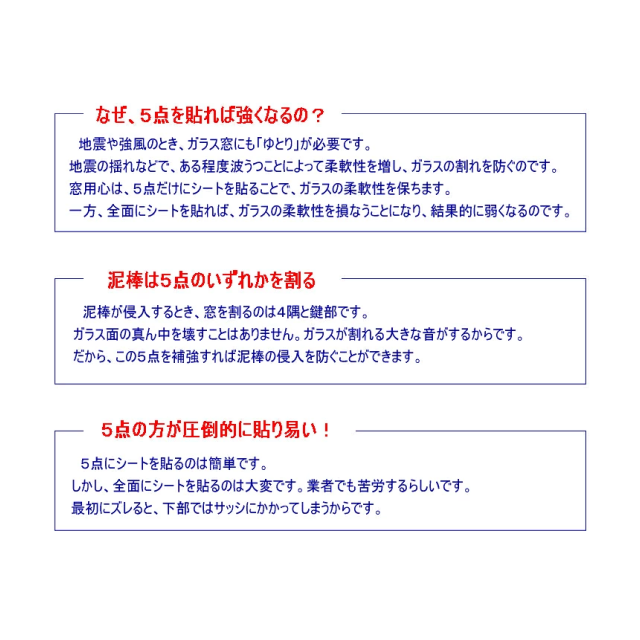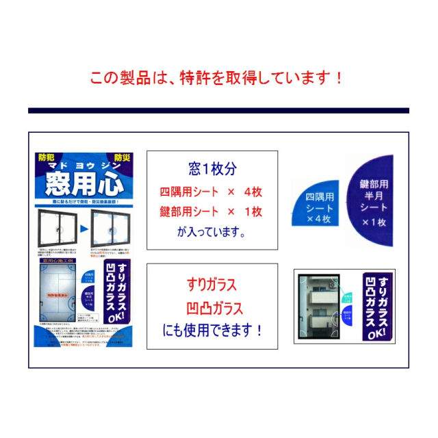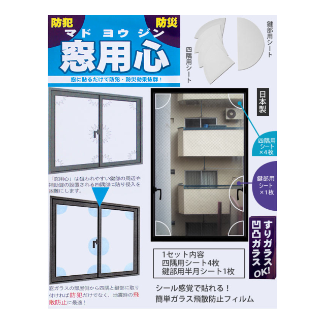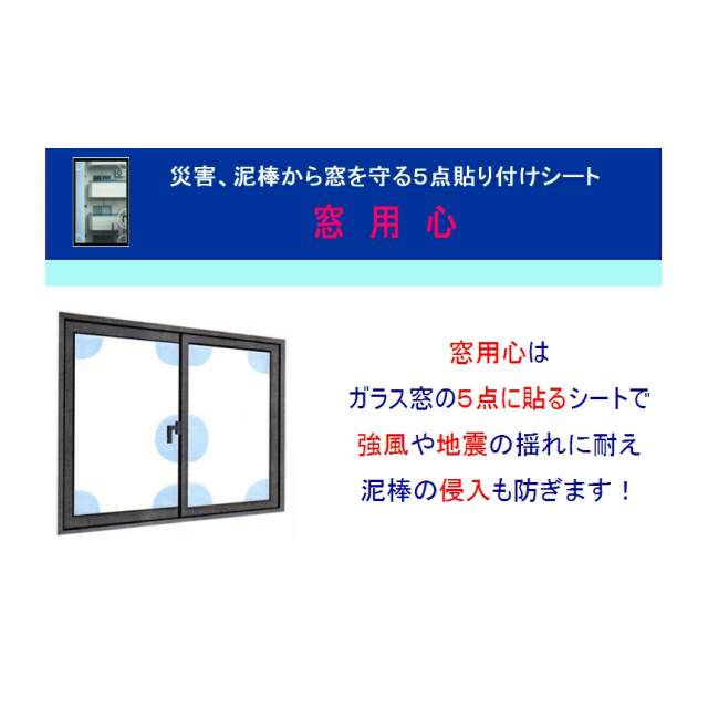 商品名「窓用心」強風や地震の揺れ&泥棒の侵入防止・特許取得の5点貼り付けシート