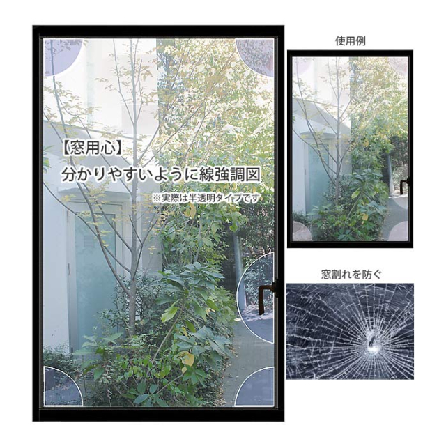 窓の強度が約4倍に。シール感覚で貼れる、4隅に貼るだけの簡単ガラス飛散防止フィルム。強風・地震時の窓ガラスの保護と飛散防止にもなる、乳白色で目立ちにくい半透明タイプの防犯対策フィルム。窓の防犯と防災に、簡単に貼れて窓の強度を高める。