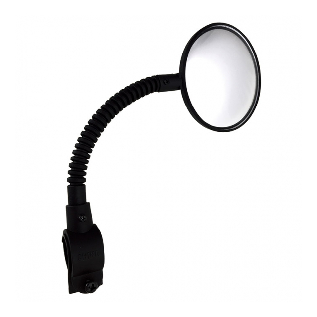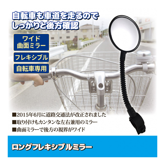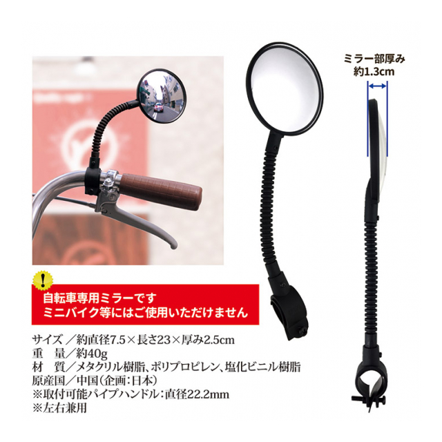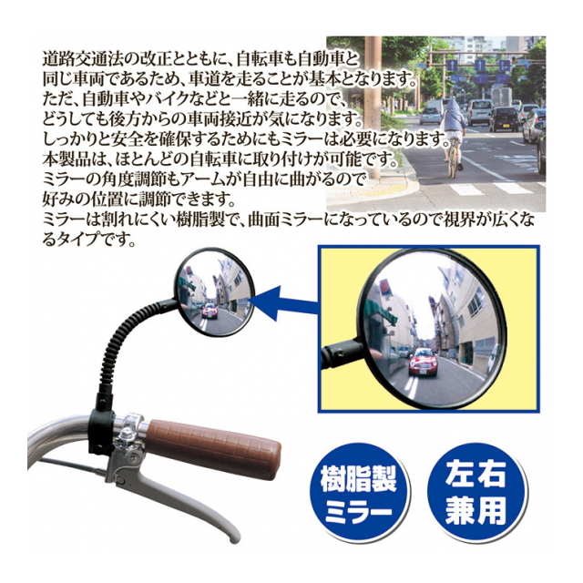 ミラーは割れにくい樹脂製で、曲面ミラーになっているので視界が広くなるタイプです。