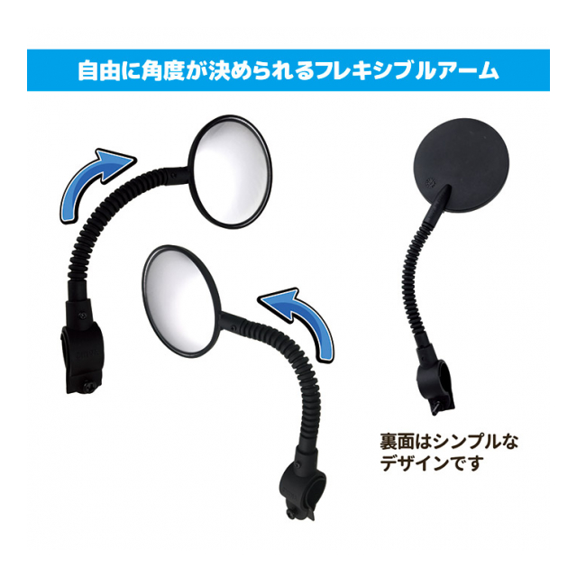 ミラーの角度調節もアームが自由に曲がるので好みの位置に調節できます。