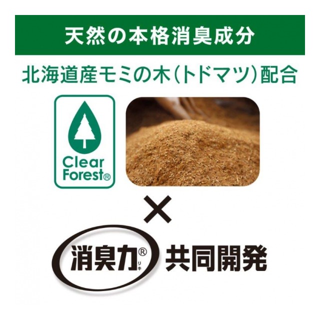 天然の本格消臭成分、北海道産モミの木(トドマツ)の粉体とクエン酸配合で、