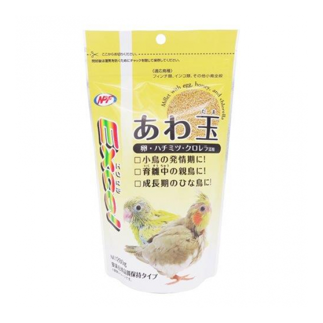 | 原材料:アワ(皮むき)、鶏卵、ハチミツ、クロレラ 個装サイズ(cm)・重量(g):縦22奥行6横13 発売元:ナチュラルペットフーズ株式会社 賞味期限・使用期限期間:有り |