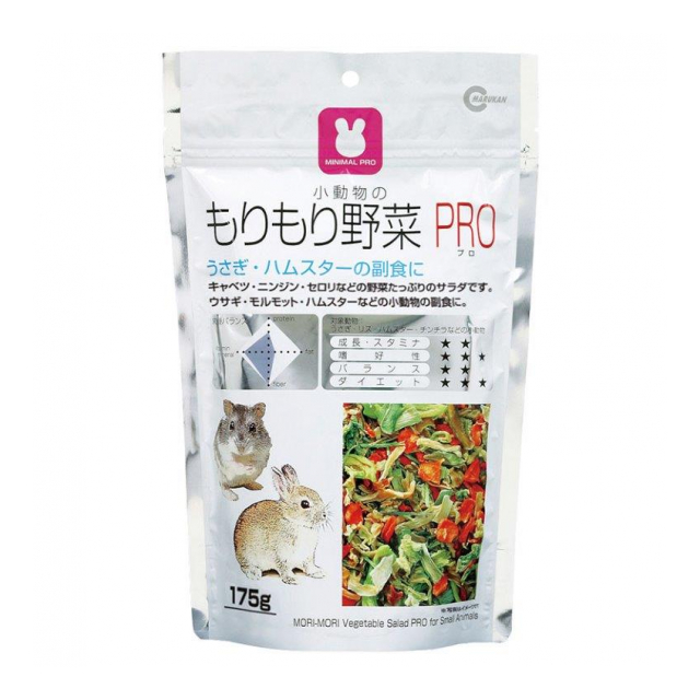 | 原材料:キャベツ、ニンジン、ニンジンの葉、セロリ <保証成分> 粗たん白質10.7%以上、粗脂肪1.7%以上、粗繊維10.5%以下、粗灰分8.0%以下、水分5.8%以下 <エネルギー> 約311kcal/100g 製造国:中国 発売元:株式会社マルカン 賞味期限・使用期限期間:24ヶ月 |