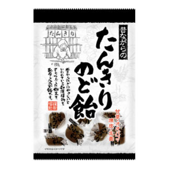 甘草、オオバコ、陳皮、生姜の 4種が配合された、まろやかで爽快な 味わいが特徴ののど飴です。