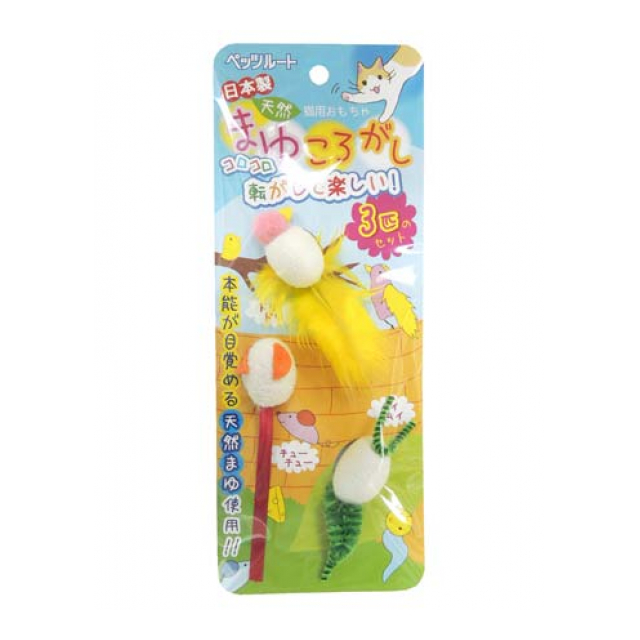 天然のまゆは壊れやすいので、完全に捕まえた時はネコちゃんから一旦離してから再び遊ばせてください。