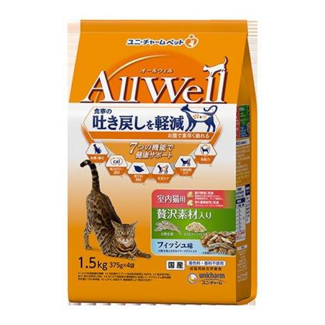 AllWell 室内猫用 贅沢素材入りフィッシュ味 1.5kg(375g×4袋)