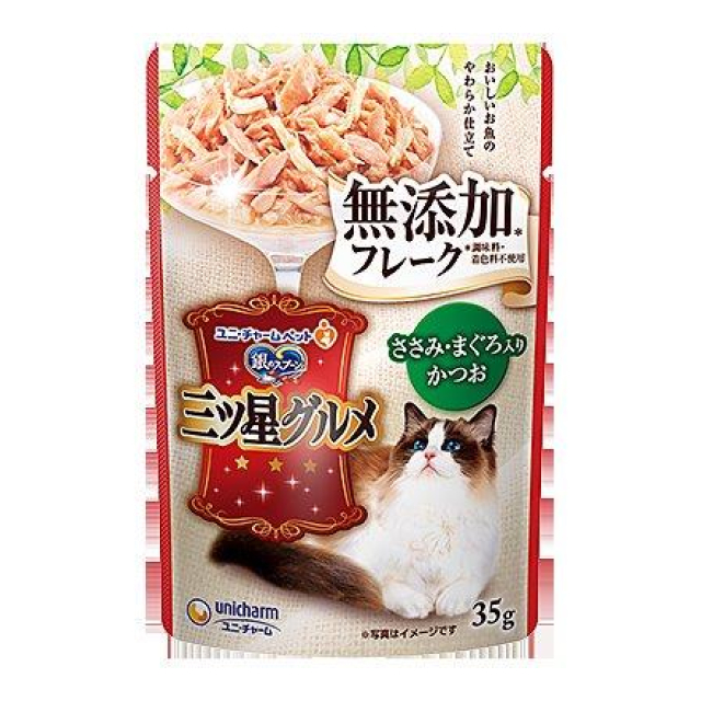 銀のスプーン 三ツ星グルメ パウチ フレーク無添加 ささみ・まぐろ入りかつお 35g
