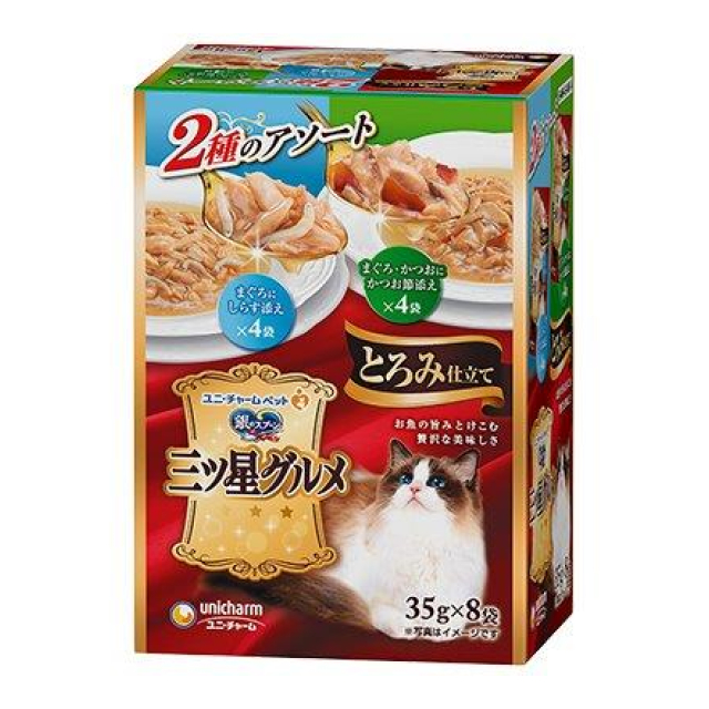 銀のスプーン 三ツ星グルメ パウチ とろみ仕立て まぐろにしらす添え&まぐろ・かつおにかつお節添え 35g×8袋
