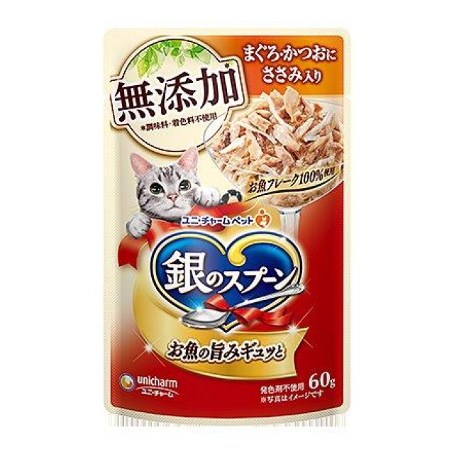 銀のスプーン パウチ 無添加 まぐろ・かつおにささみ入り 60g
