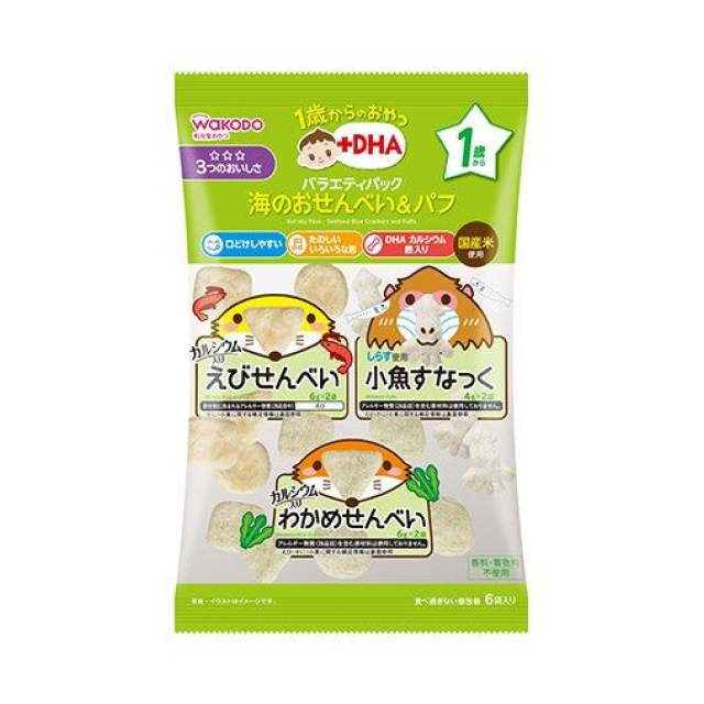 1歳からのおやつ+DHA バラエティパック 海のおせんべい&パフ 6袋