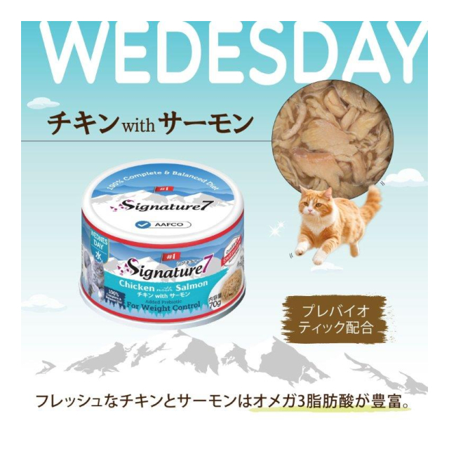 | シグネチャー7 グレイビーブロス チキンwithサーモン 70g [品番: 534911] [JAN: 0753692083201] | 96 | 295 円 | ログインすると表示 |