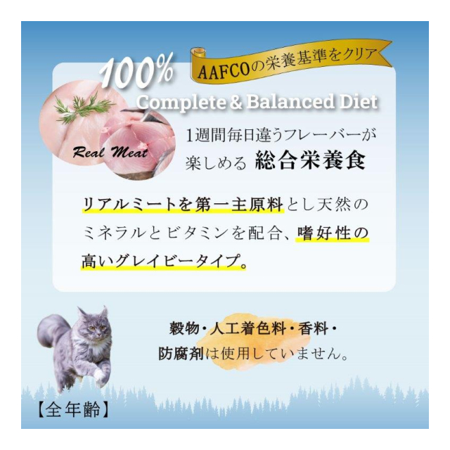 AAFCO基準をクリアした全年齢対応の総合栄養食。