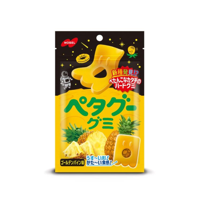 芳醇で甘みのあるゴールデンパイン味のぺたんこハードグミ「ペタグー」です。