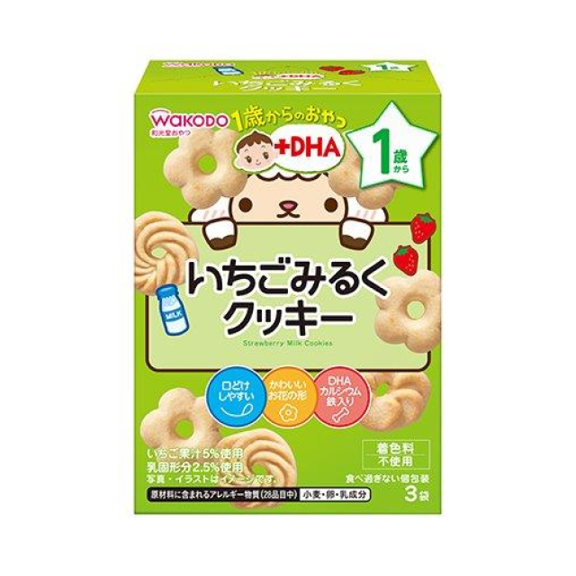 1歳からのおやつ+DHA いちごみるくクッキー 16g×3袋