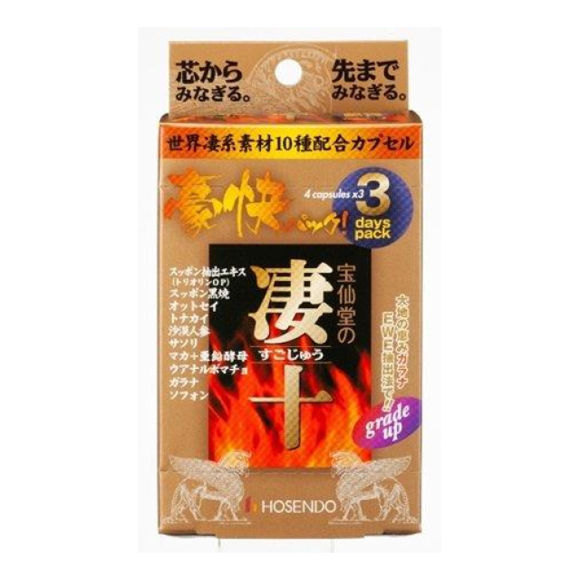 | 凄十 豪快パック(4粒×3日分) [品番: 29187] [JAN: 4969502151695] | 1 | 1,300 円 | ログインすると表示 |