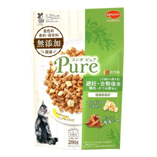 コンボ キャット ピュア 避妊・去勢後用 まぐろ味・鶏肉・かつお節添え 200g