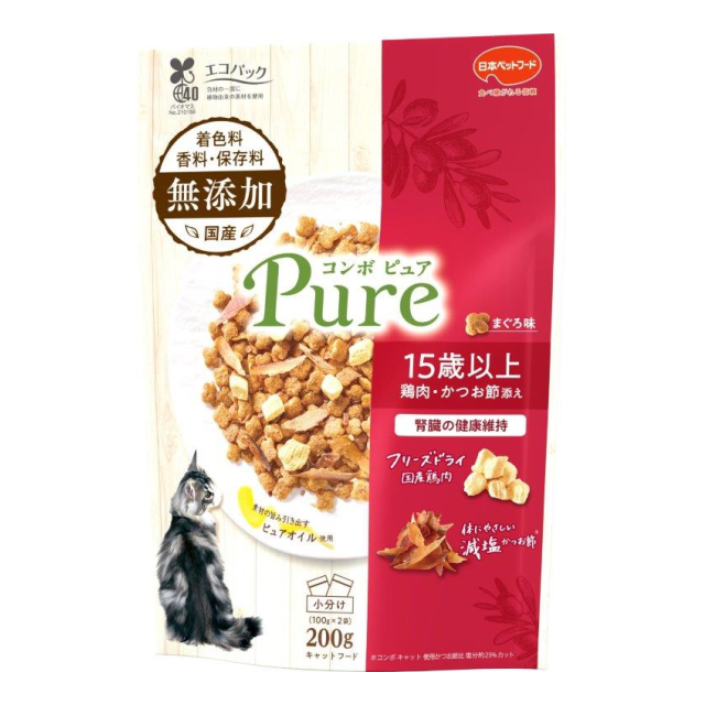 コンボ キャット ピュア 15歳以上 まぐろ味・鶏肉・かつお節添え 200g