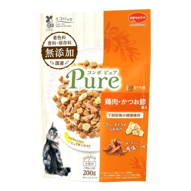 | コンボ キャット ピュア まぐろ味・鶏肉・かつお節添え 200g [品番: 531797] [JAN: 4902112046500] | 12 | 554 円 | ログインすると表示 |