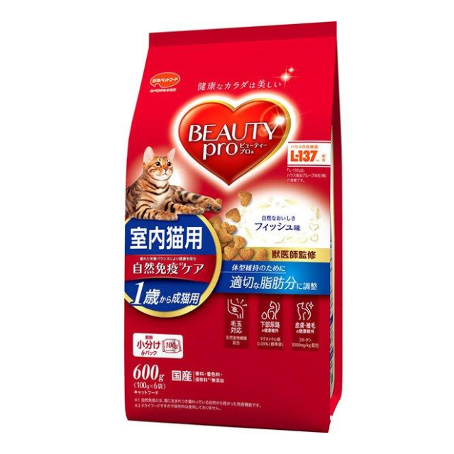 ビューティープロ キャット 成猫用 1歳から 室内猫用 フィッシュ味 600g