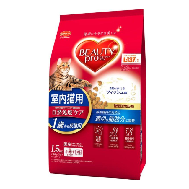 ビューティープロ キャット 成猫用 1歳から 室内猫用 フィッシュ味 1.5kg
