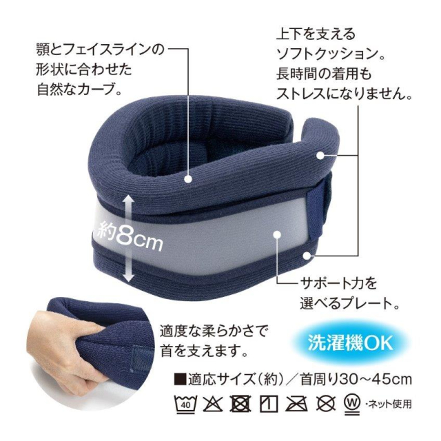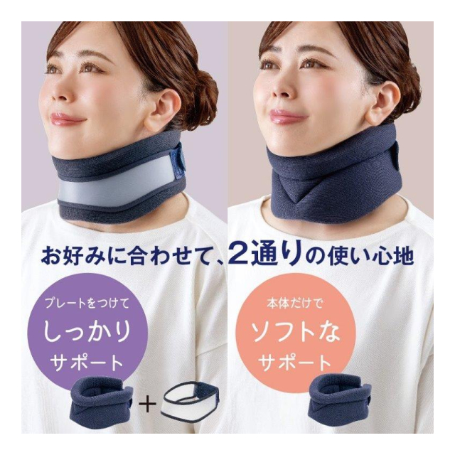 サポート力を選べる着脱可能なプレートがついた首サポーター。