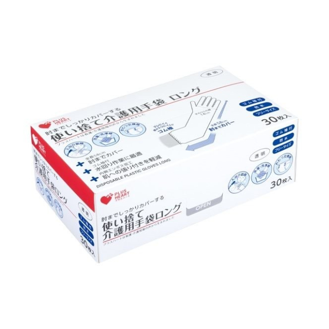 【欠品中】プラスハート 使い捨て介護用手袋ロング 30枚入