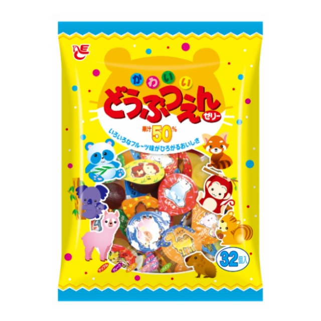 どうぶつの可愛らしい絵柄の果汁50%のフルーツゼリーです。