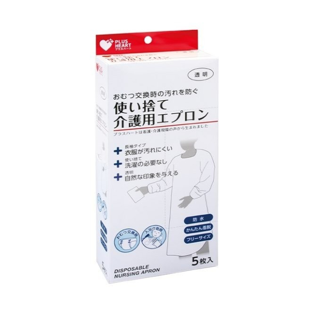 プラスハート 使い捨て介護用エプロン 袖付 透明 5枚入