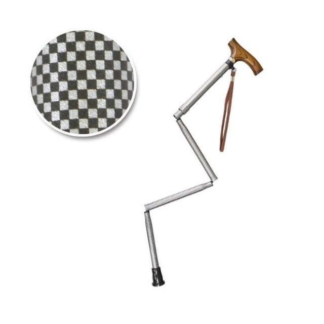 プラスハート すべりにくい杖 伸縮折りたたみ式 黒チェック