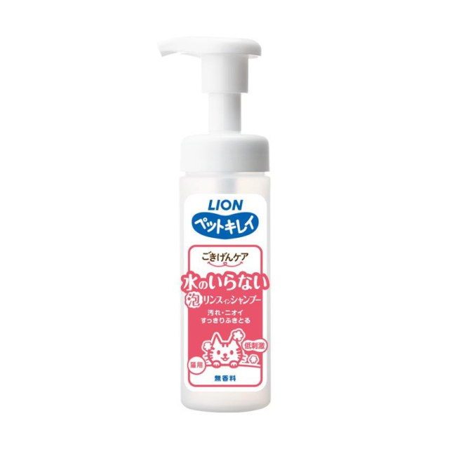 ペットキレイ ごきげんケア 水のいらない泡リンスインシャンプー 猫用 150ml 【LION ドライシャンプー ボディケア 無香料 泡タイプ】