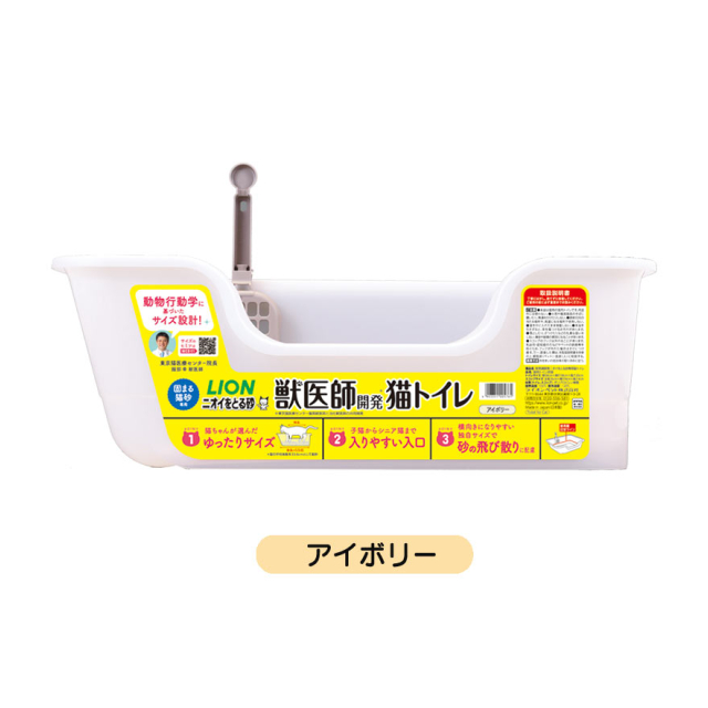 ニオイをとる砂専用 猫トイレ アイボリー 【LION ペット用品 スコップ付き ゆったりサイズ】