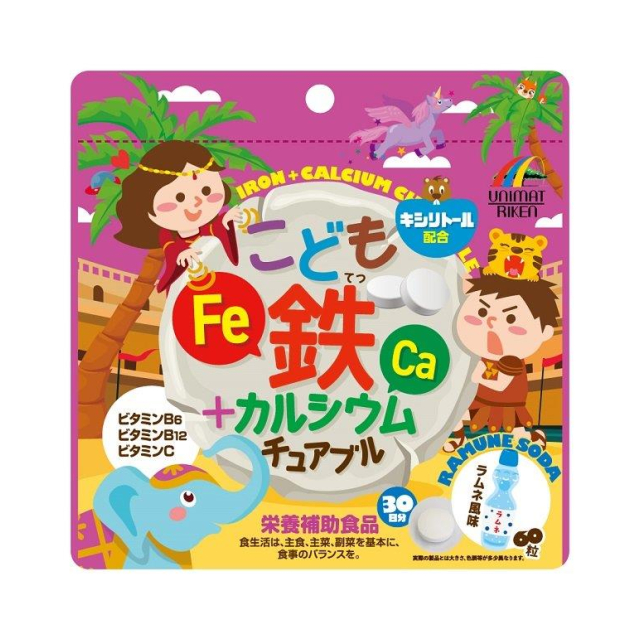 お子様の成長をサポートする「鉄」と「カルシウム」に、さらに鉄と一緒に摂りたい「ビタミンB6」「ビタミンB12」「ビタミンC」を配合しました。