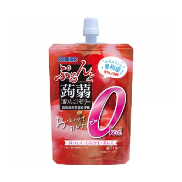 蒟蒻粉配合でぷるんとした食感と、みずみずしい果物感が楽しめる、0kcal※の美味しい蜜りんご風味の蒟蒻ゼリーです。