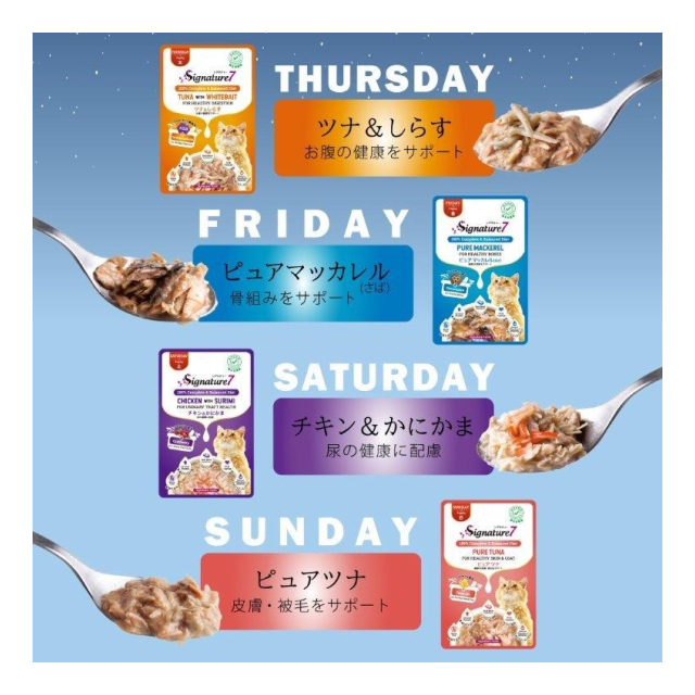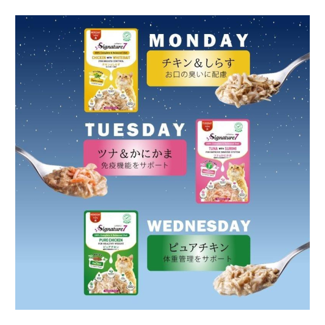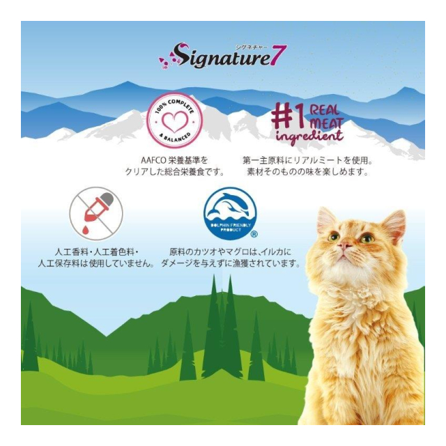 オールステージ・猫用総合栄養食「シグネチャー7」穀物不使用のパウチタイプ。