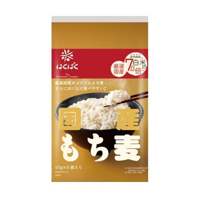 | 原材料:もち大麦(国産) 個装サイズ(cm)・重量(g):縦21奥行4横13重量300 発売元:株式会社はくばく |