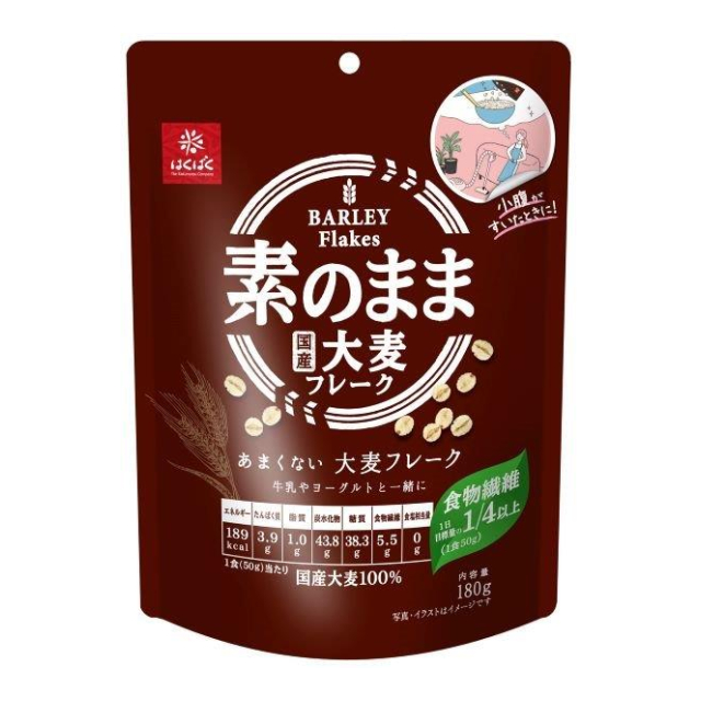 | 原材料:大麦(国産) 個装サイズ(cm)・重量(g):縦24奥行7.5横18重量180 発売元:株式会社はくばく |