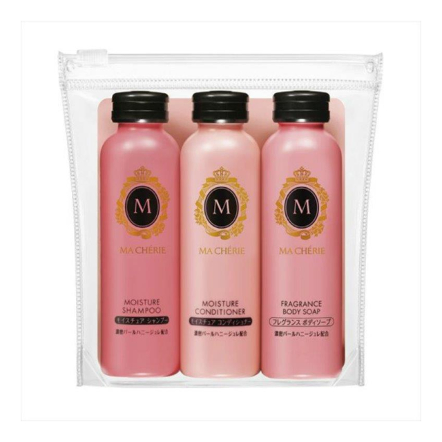 ボディソープ、モイスチュアシャンプー・コンディショナーのトラベルセット。
