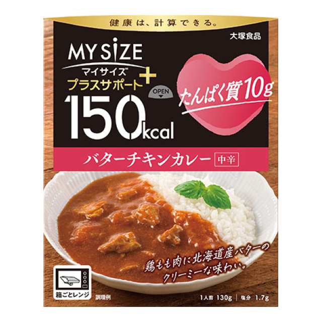 | 150kcalマイサイズ プラスサポート たんぱく質10g バターチキンカレー 130g [品番: 535666] [JAN: 4901150110402] | 1 | オープン価格 | ログインすると表示 |