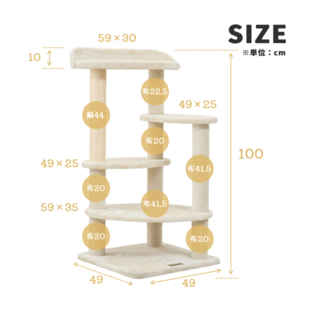 | 原材料:台座・ステップ台:木質ボードに生地貼り ベッド:木質ボードに生地貼り、ポリエステル ポール:紙管に麻縄巻き、生地貼り 製造国:企画・デザイン:日本(Mau) 製造:中国 個装サイズ(cm)・重量(g):縦20.5奥行50横50 発売元:株式会社Mau |
