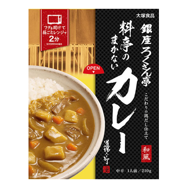 | 原材料:野菜(たまねぎ(国産)、じゃがいも、にんじん)、牛肉、チキンブイヨン、小麦粉、豚脂、オニオンペースト、カレー粉、チキンエキス、食塩、魚醤、砂糖、赤ワイン、クリーム(乳製品)、香味油、乳等を主要原料とする食品、酵母エキス、マーガリン、ココナッツミルクパウダー、ウスターソース、おろしにんにく、りんごペースト/増粘剤(加工デンプン)、パプリカ色素、リンゴ抽出物、香料、(一部に小麦・乳成分・牛肉・大豆・鶏肉・豚肉・りんごを含む) 個装サイズ(cm)・重量(g):縦17奥行2.5横13重量240 発売元:大塚食品 |
