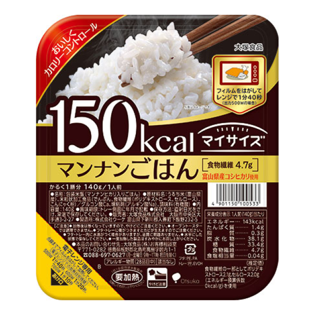 | 150kcalマイサイズ マンナンごはん 140g [品番: 438095] [JAN: 4901150100533] | 1 | オープン価格 | ログインすると表示 |