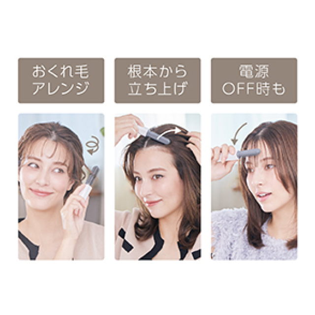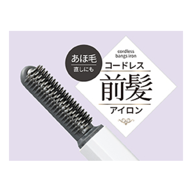 前髪や顔回りの毛を整える、前髪用ブラシ型アイロン。