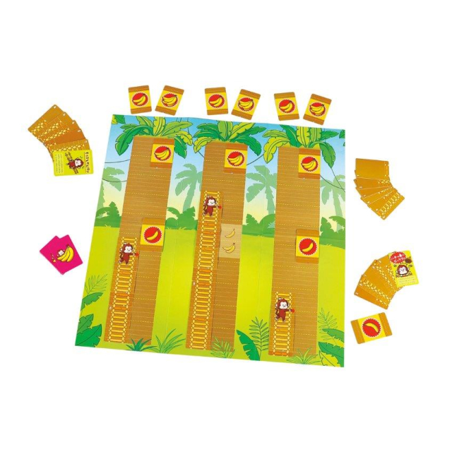 はしごカードでおさるさんを木に登らせて、バナナをつかめる位置で止められたらバナナをゲットできます。