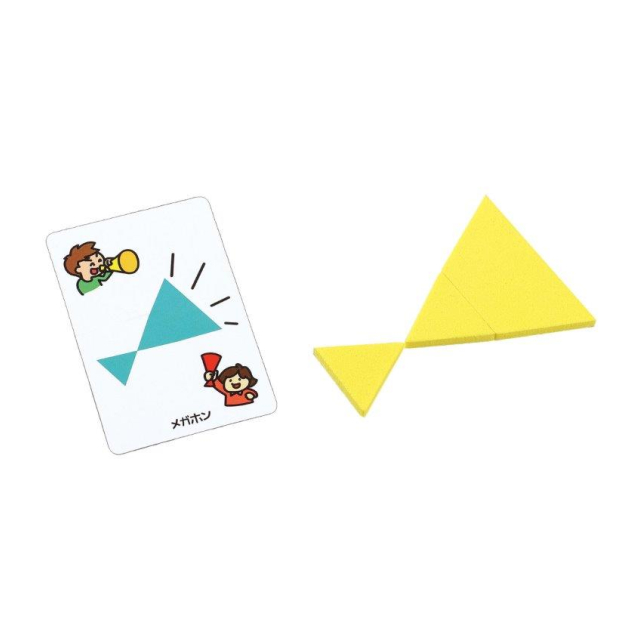 山札をめくって出たシルエットと同じものを手持ちのピースを使って作ります。