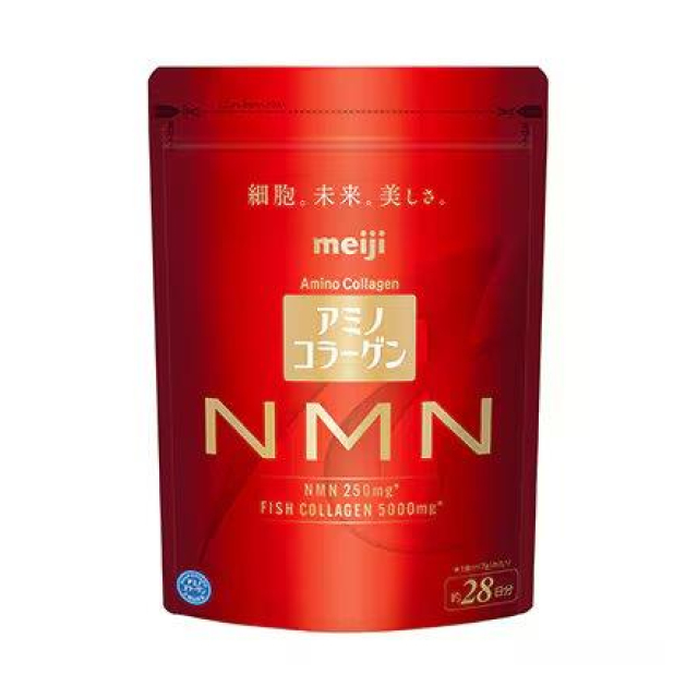 | 原材料:魚コラーゲンペプチド(国内製造)、マルトデキストリン、NMN(ニコチンアミドモノヌクレオチド)、植物油脂/グルコサミン、V.C、アルギニン、増粘剤(アラビアガム)、乳化剤、香料、(一部に乳成分・オレンジ・大豆・ゼラチンを含む) 個装サイズ(cm)・重量(g):縦22.5奥行16横8.1重量206 発売元:株式会社明治 直射日光および高温多湿の場所を避けて保存してください。 |