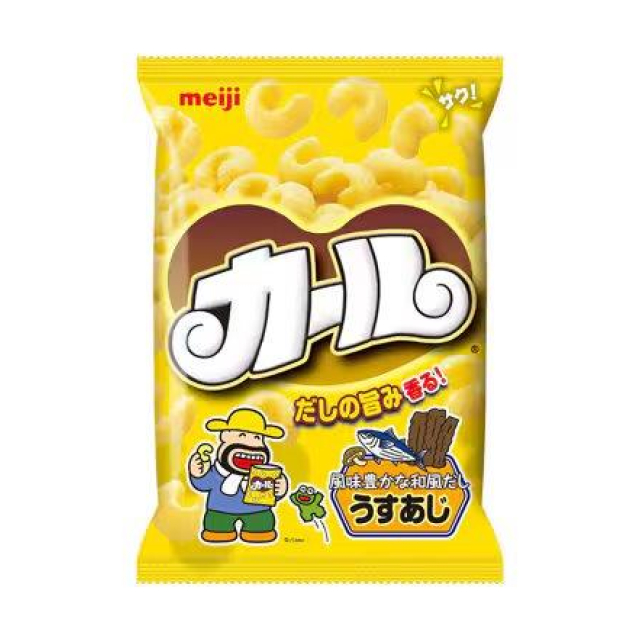 | 原材料:コーングリッツ(国内製造)、植物油脂、こんぶシーズニング、食塩、あさりエキスシーズニング、香味油、しいたけエキスパウダー/セルロース、調味料(アミノ酸等)、トレハロース、酸味料、乳化剤、酸化防止剤(V.C、V.E)、甘味料(甘草)、香料、(一部にえび・かに・小麦・卵・乳成分・大豆を含む) 発売元:株式会社明治 賞味期限・使用期限期間:180日 |